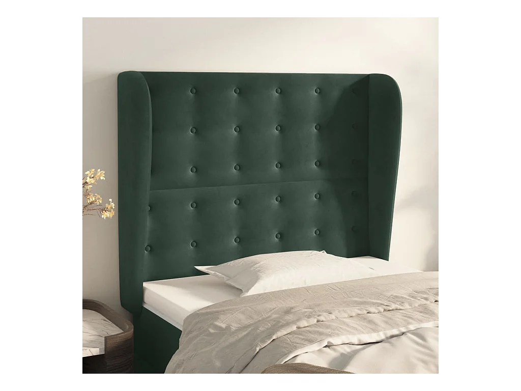 Tête de lit avec oreilles Vert foncé 93x23x118/128 cm Velours