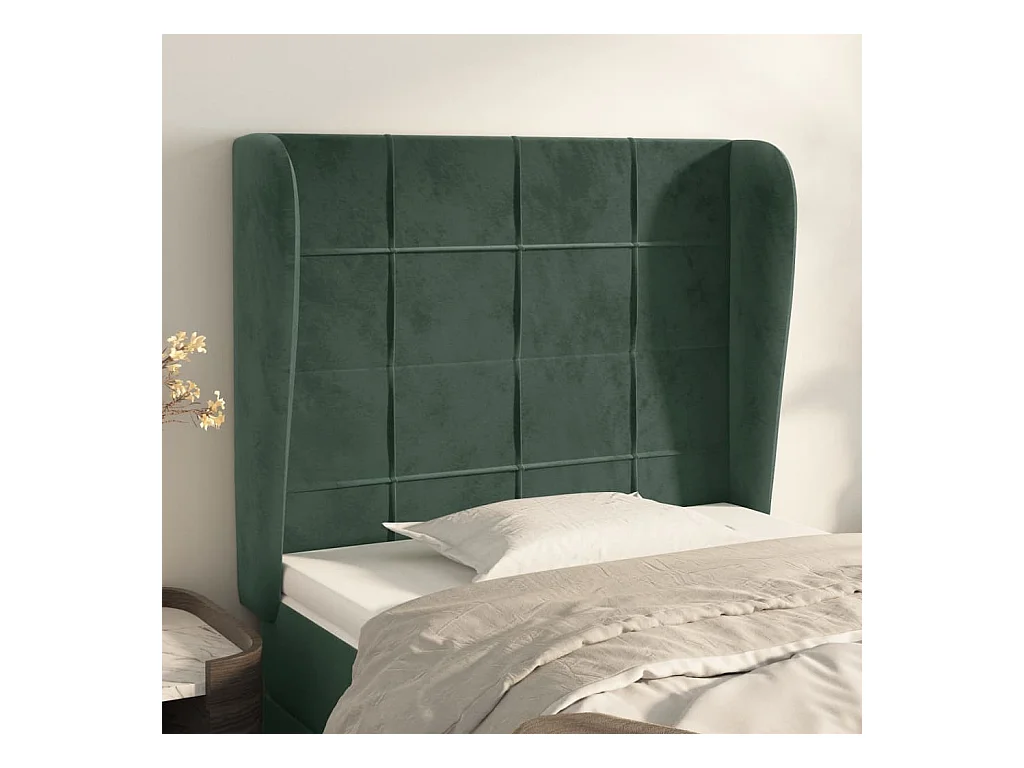 Tête de lit avec oreilles Vert foncé 103x23x118/128 cm Velours