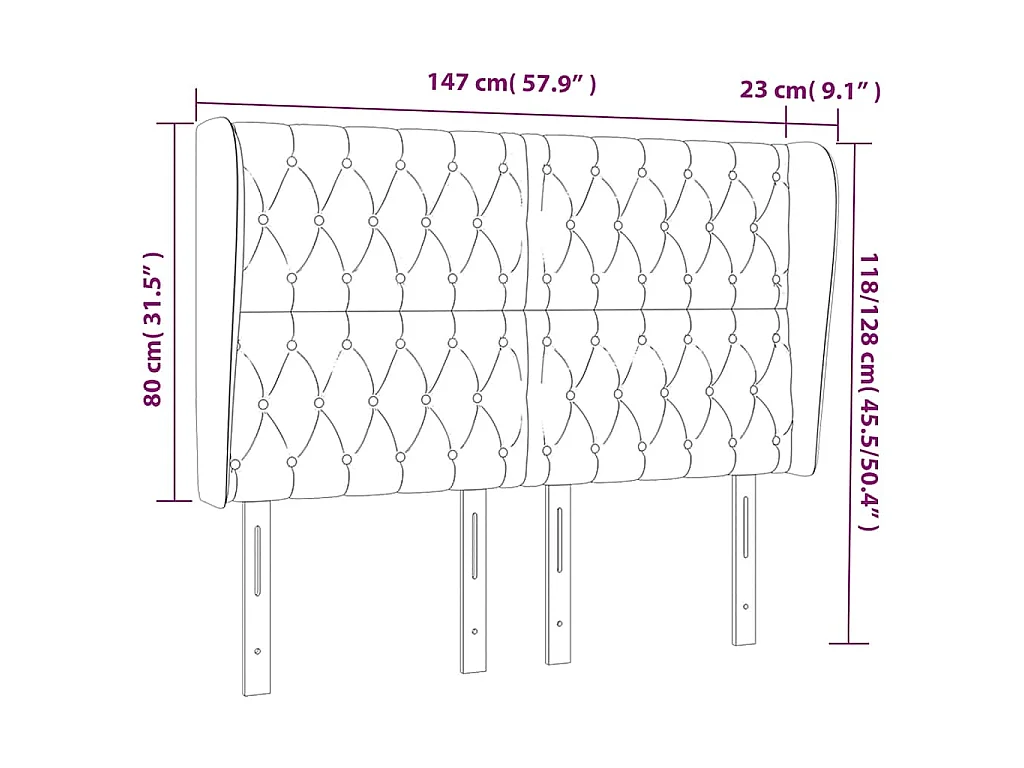 Tête de lit avec oreilles Vert foncé 147x23x118/128 cm Velours