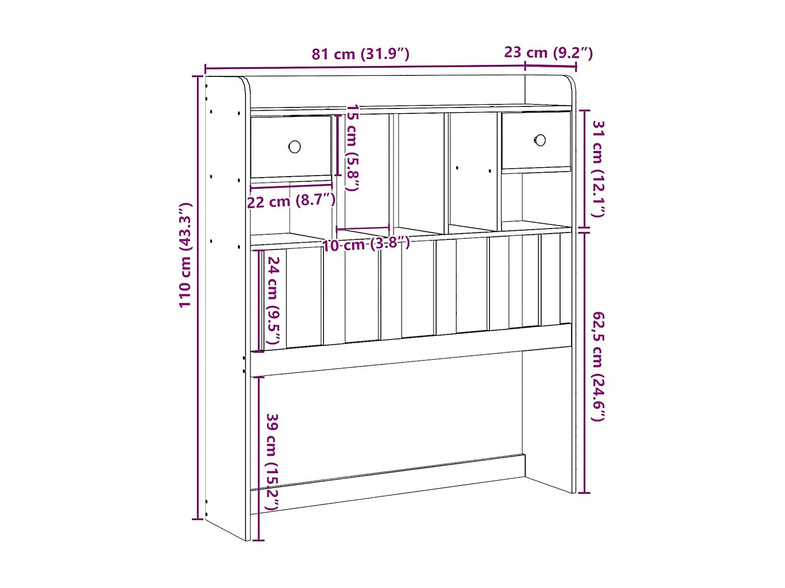 Tête de lit avec rangement cire marron 75 cm bois massif de pin