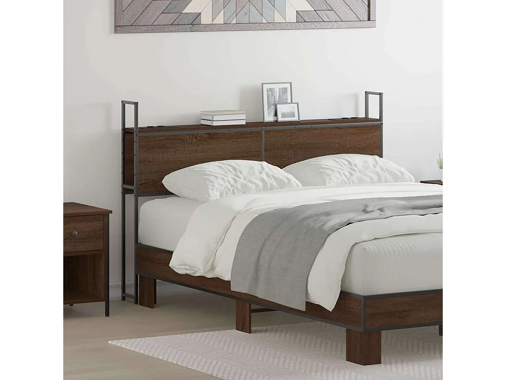 Tête de lit avec Station de Charge Chêne fumé 140 cm