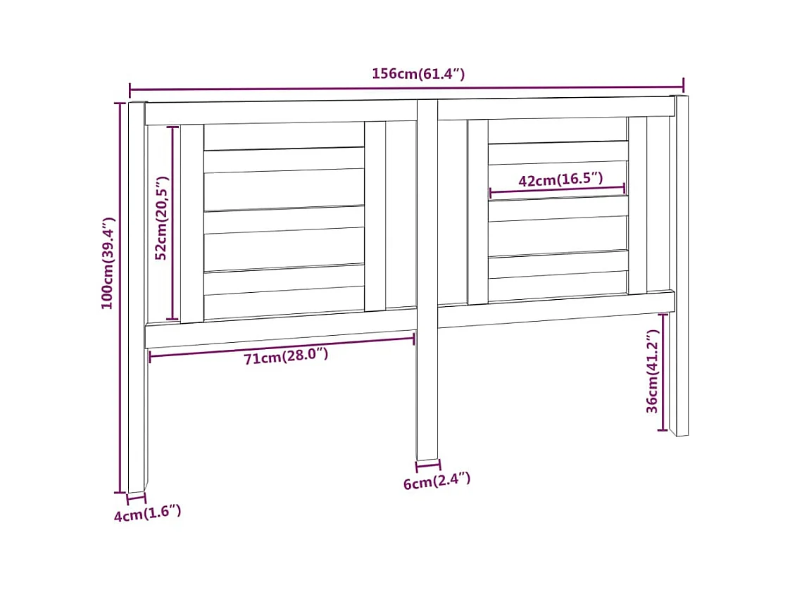 Tête de lit Blanc 156x4x100 cm Bois massif de pin