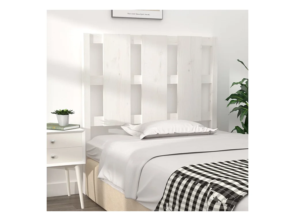 Tête de lit Blanc 95,5x4x100 cm Bois massif de pin POI41376 BonneVie Meuble