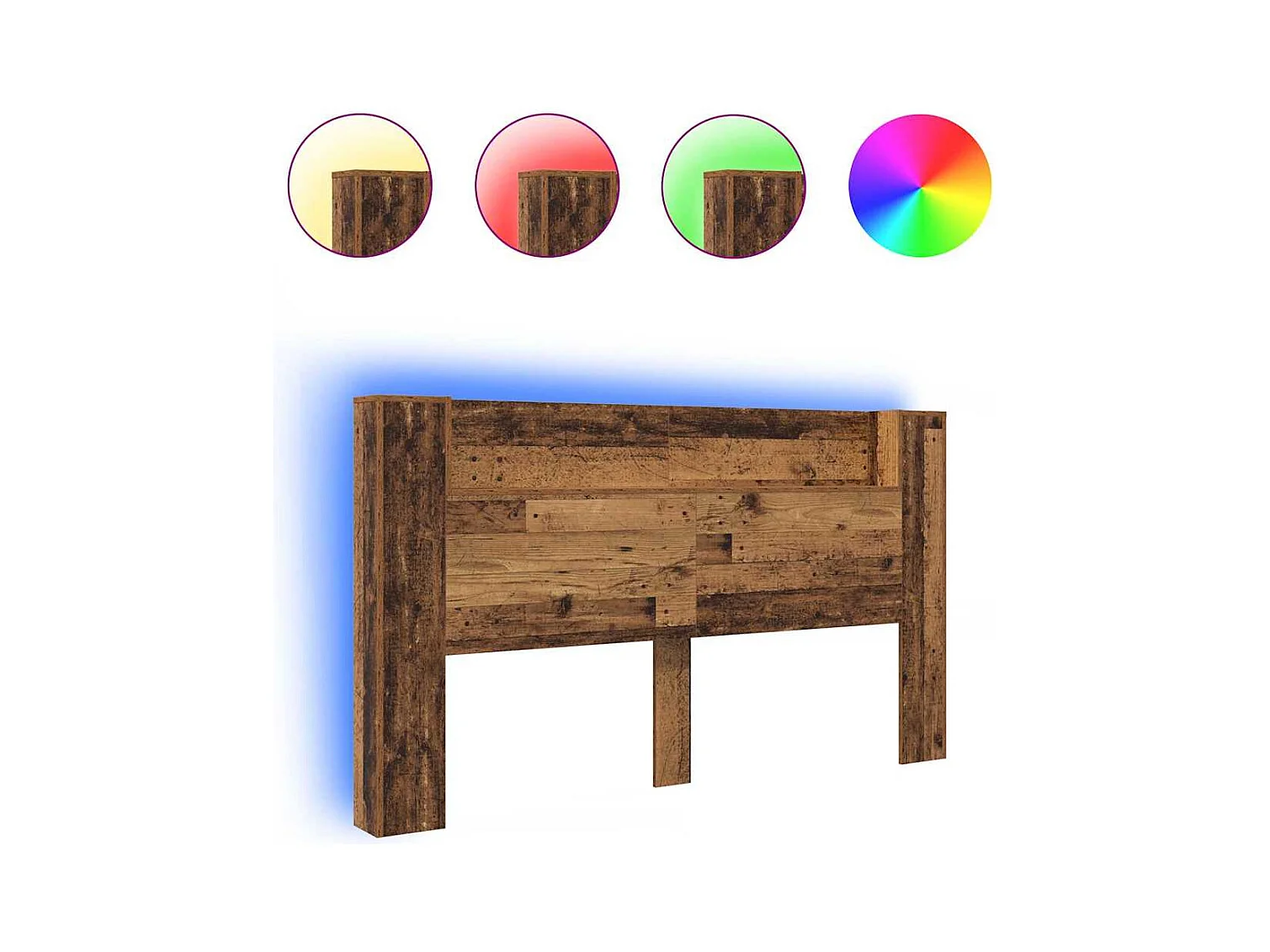 Tête de lit à LED vieux bois 180x18,5x103,5cm bois d'ingénierie