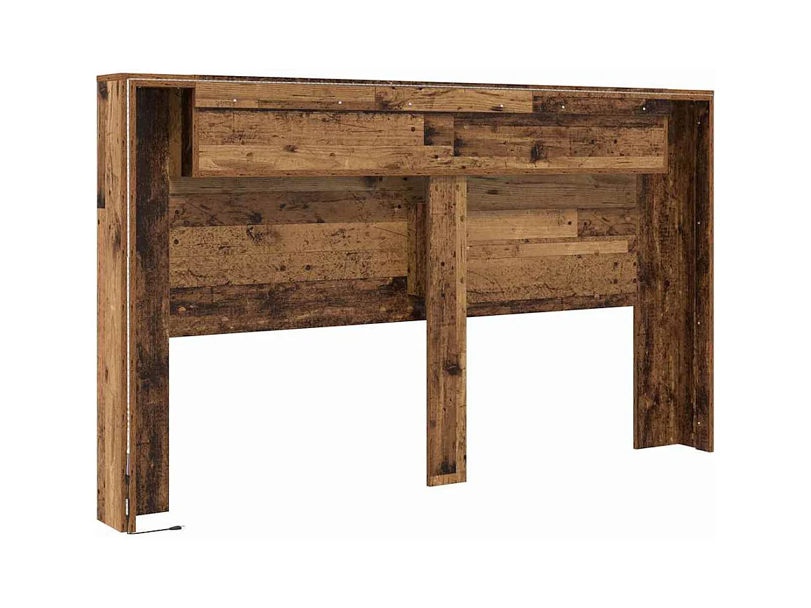 Armoire tête de lit avec LED vieux bois 160x17x102 cm