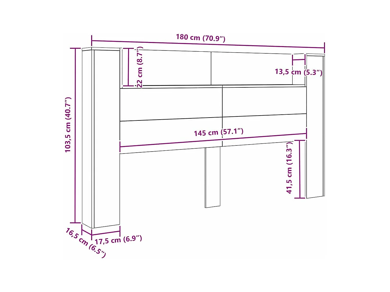 Armoire tête de lit avec LED vieux bois 180x17x102 cm