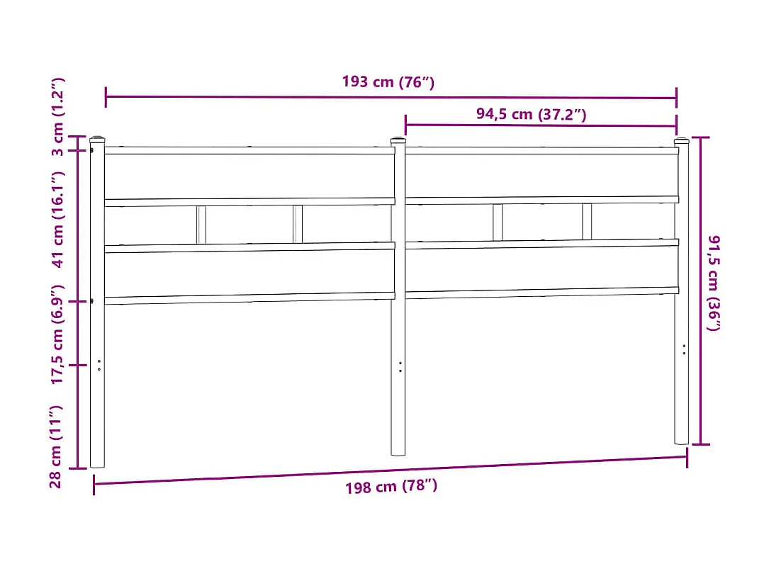 Tête de lit chêne sonoma 75 cm bois d'ingénierie et acier