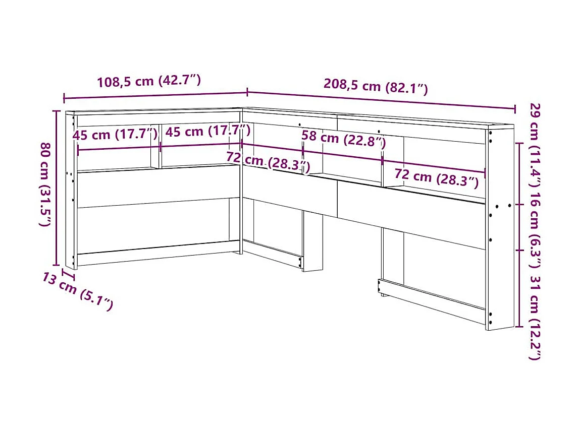 Tête de lit de bibliothèque en forme de L bois massif de pin