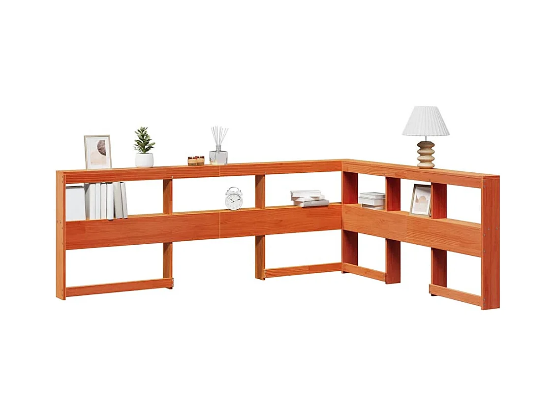 Tête de lit de bibliothèque en forme de L bois massif de pin