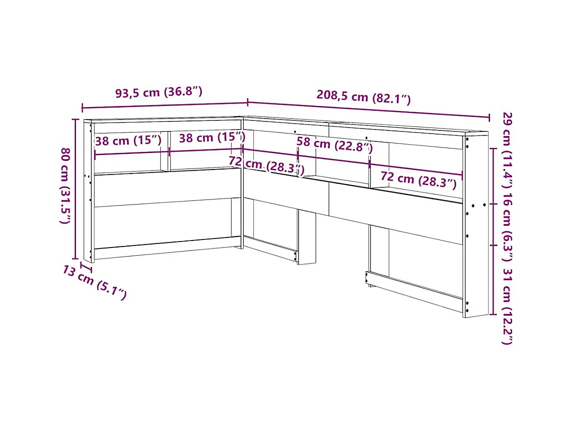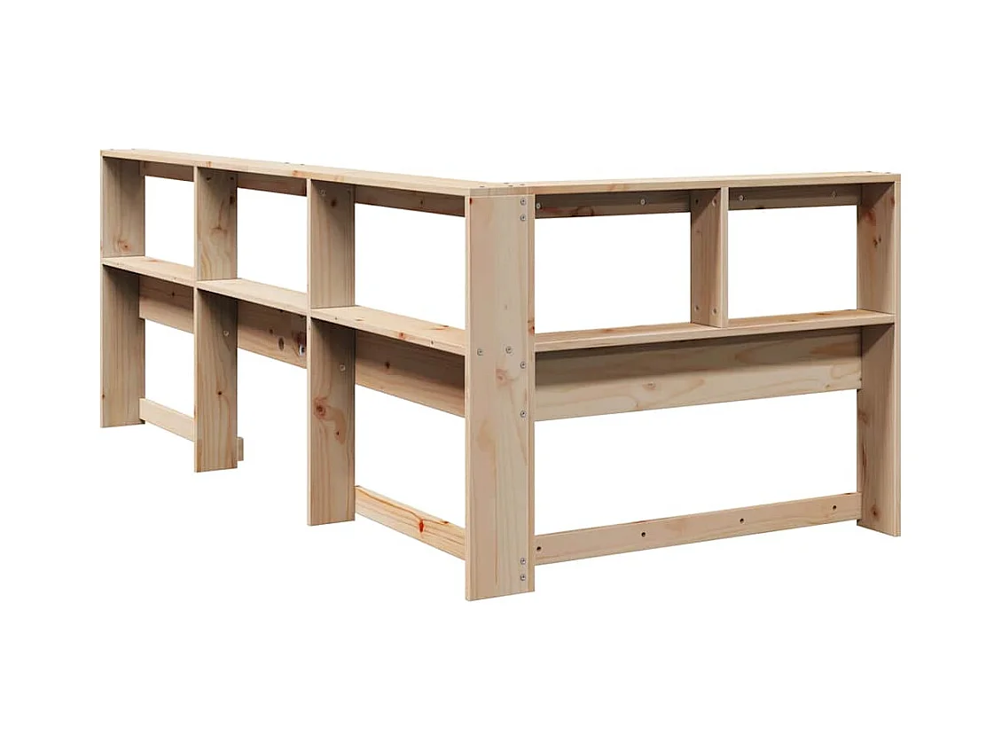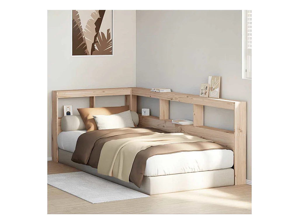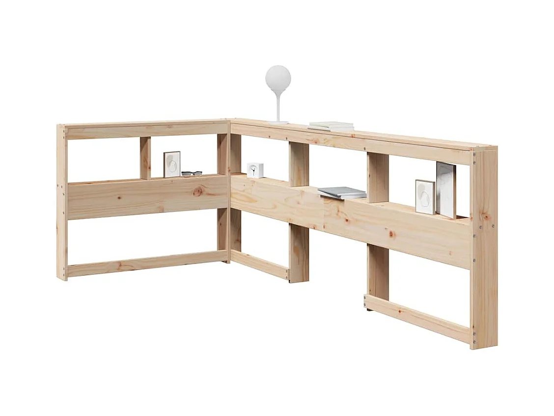 Tête de lit de bibliothèque en forme de L bois massif de pin