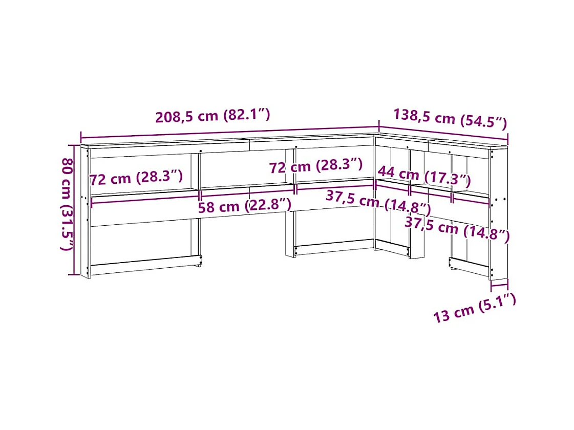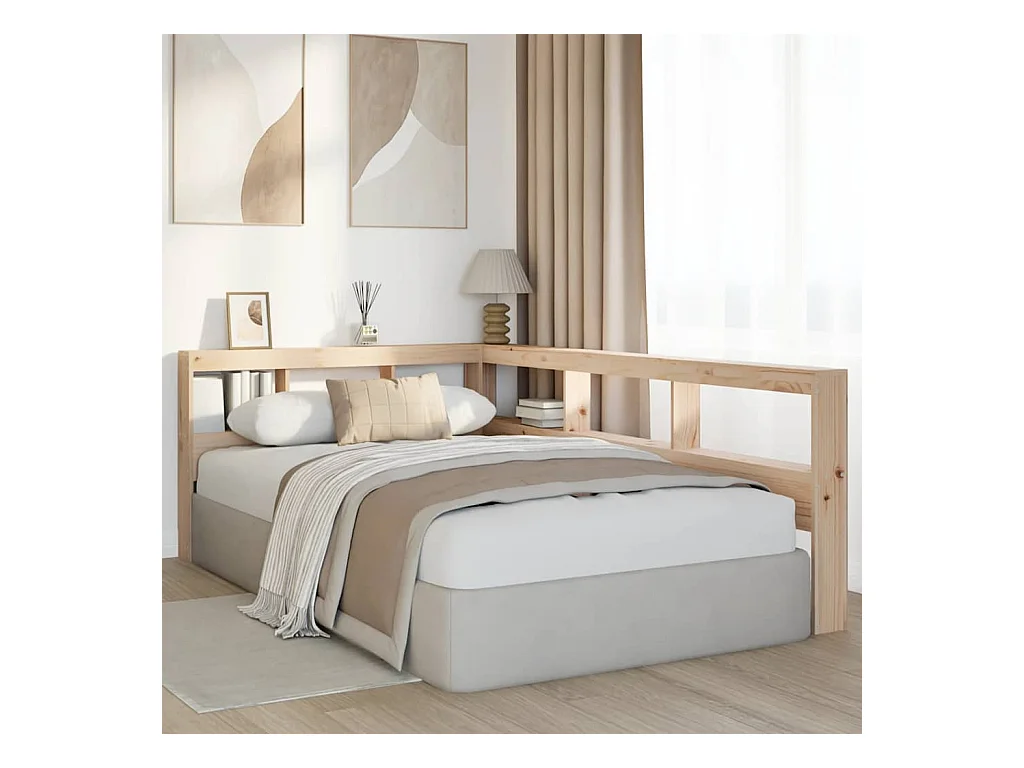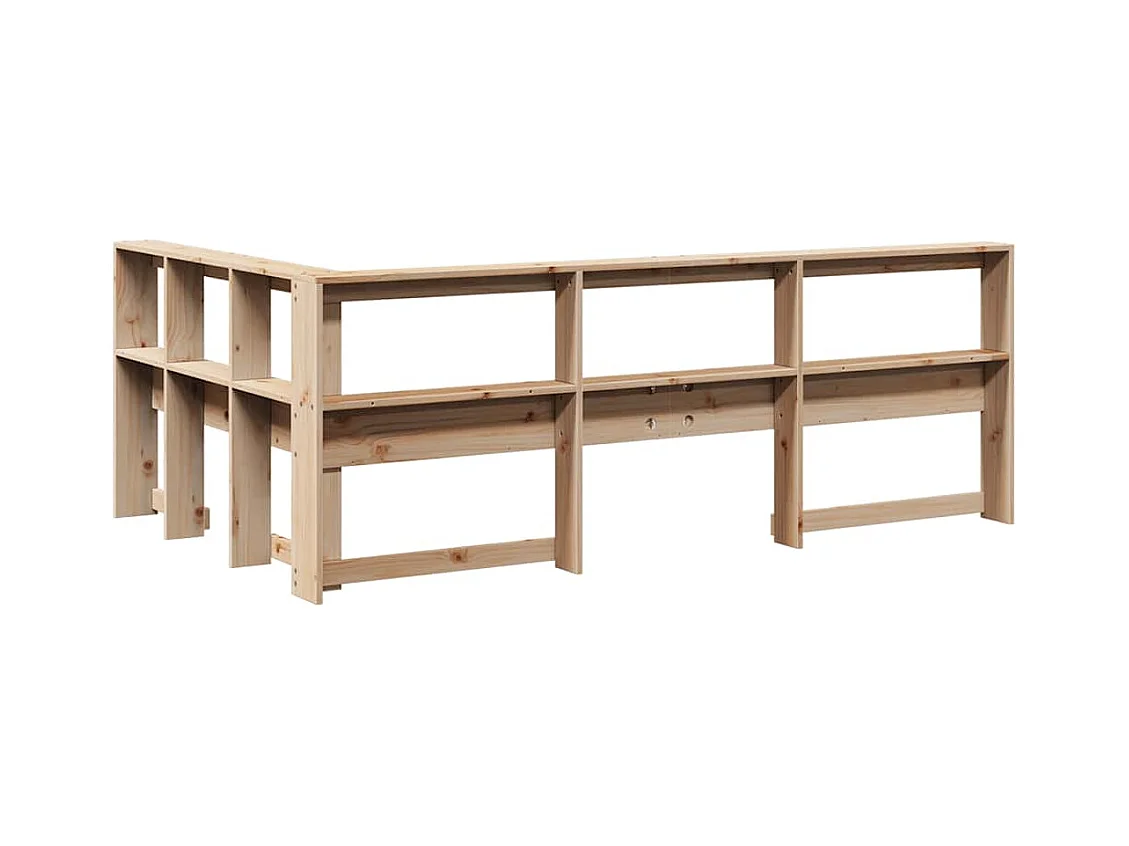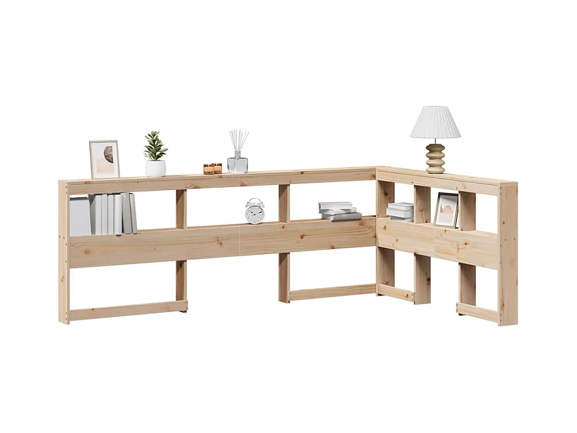 Tête de lit de bibliothèque en forme de L bois massif de pin