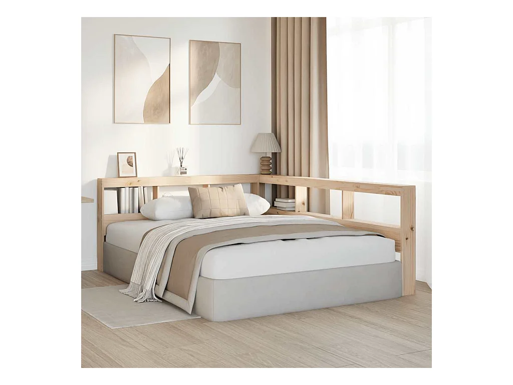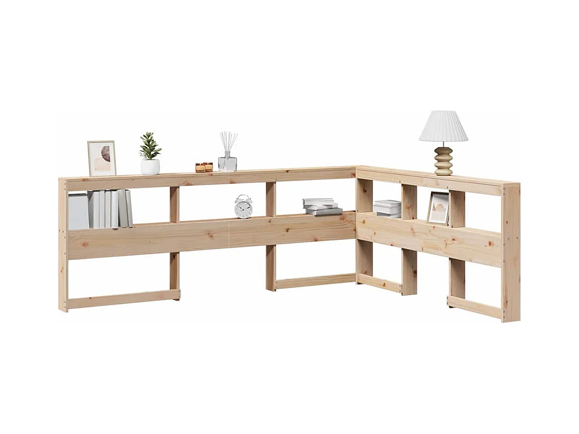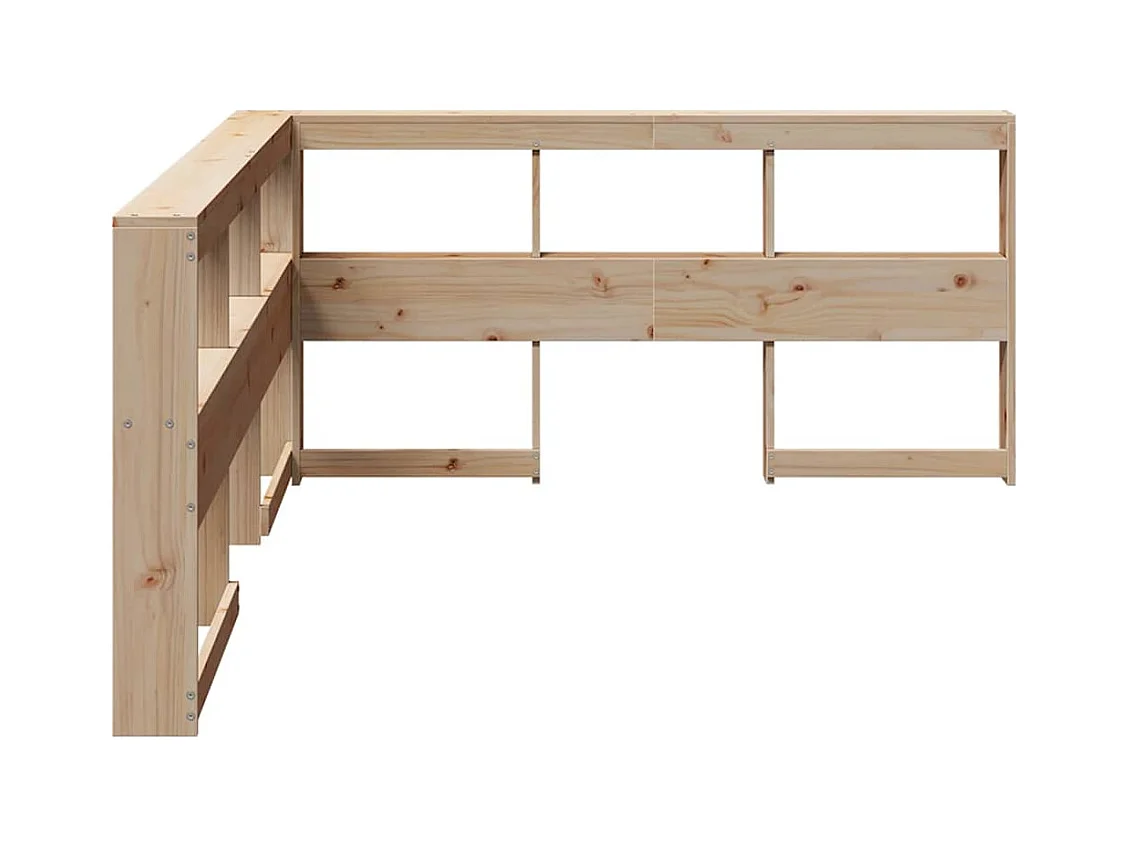 Tête de lit de bibliothèque en forme de L bois massif de pin