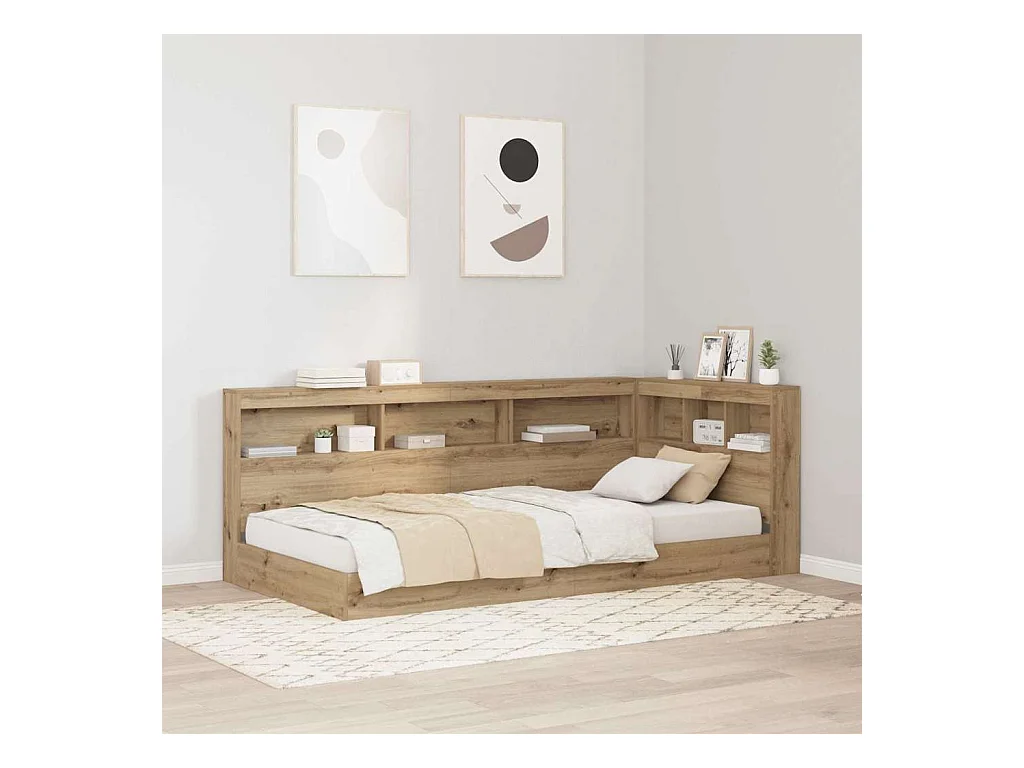 Tête de lit de rangement avec étagère chêne artisanal 90 cm