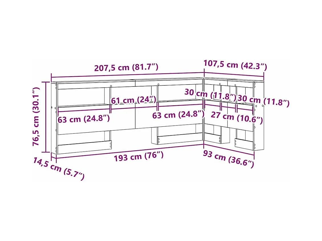 Tête de lit de rangement Bois ancien 75 cm Bois d'ingénierie