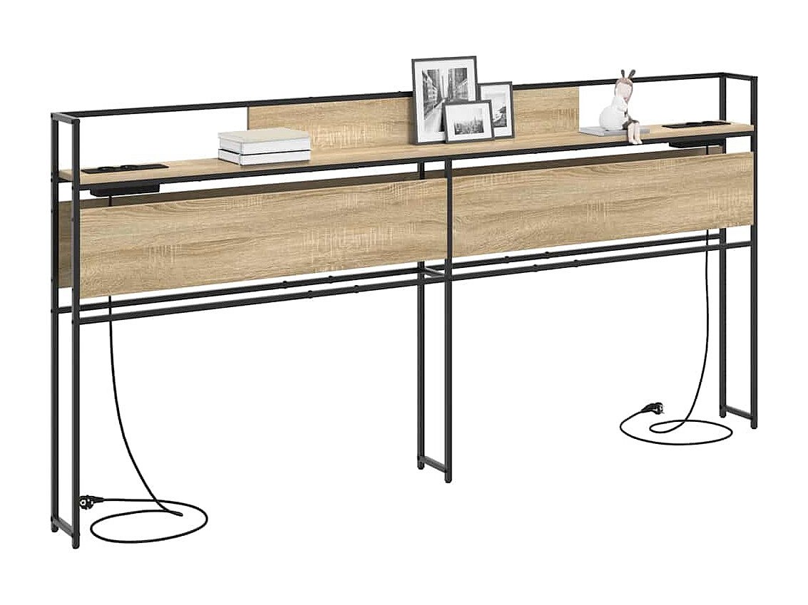 Tête de lit avec Station de Charge Chêne fumé 160 cm