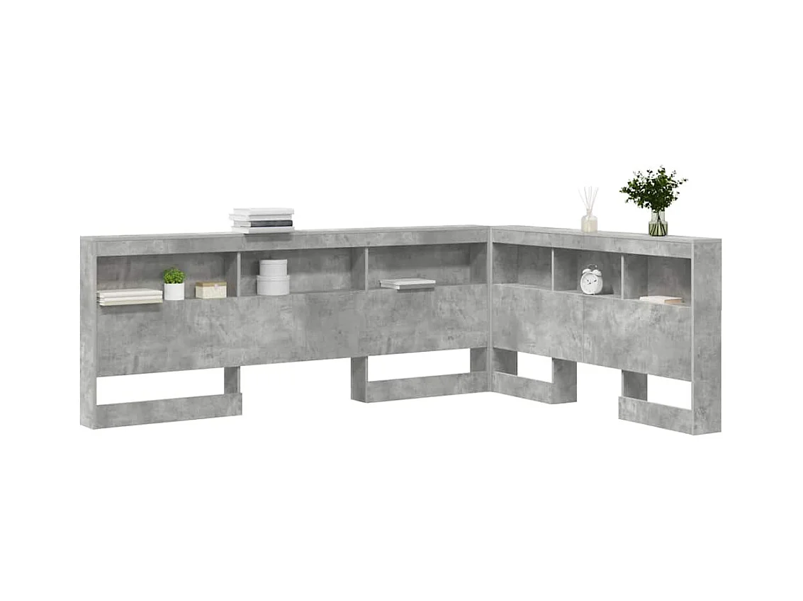 Tête de lit de rangement Gris béton 200 cm Bois d'ingénierie