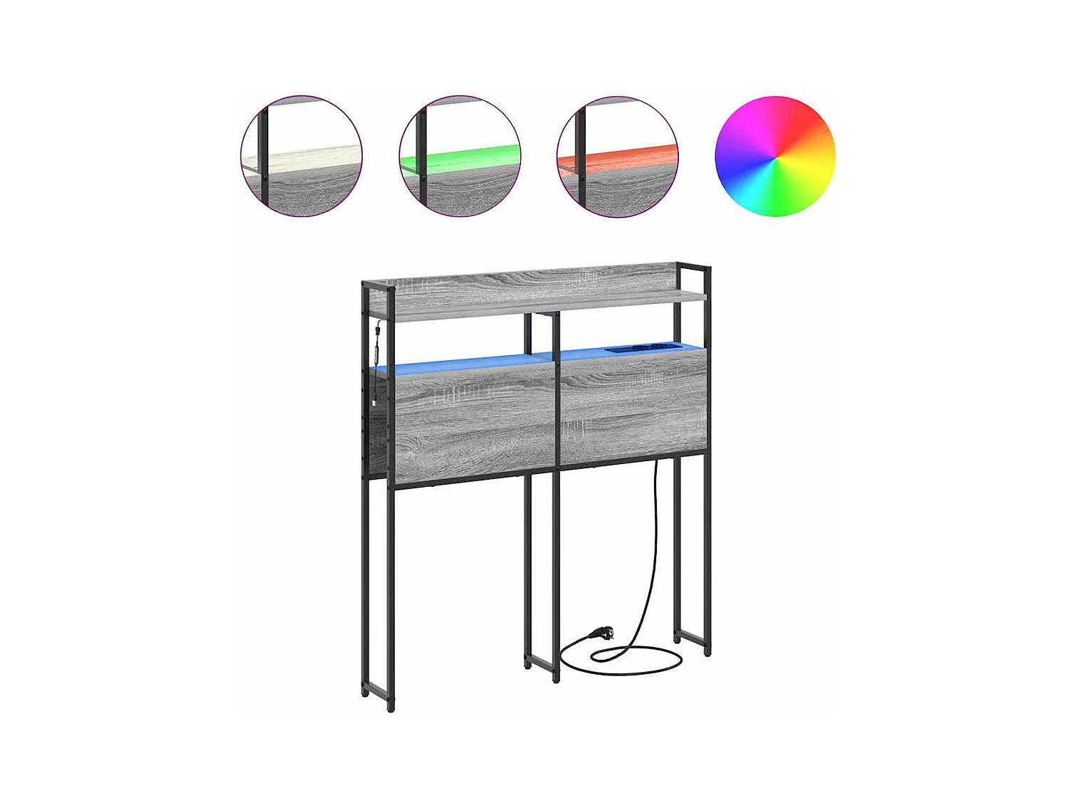 Tête de Lit avec LED Chêne noir 122 x 17 x 102 cm