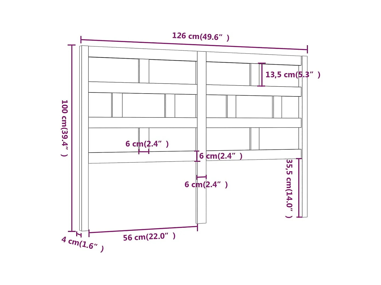 Tête de lit Gris 126x4x100 cm Bois massif de pin