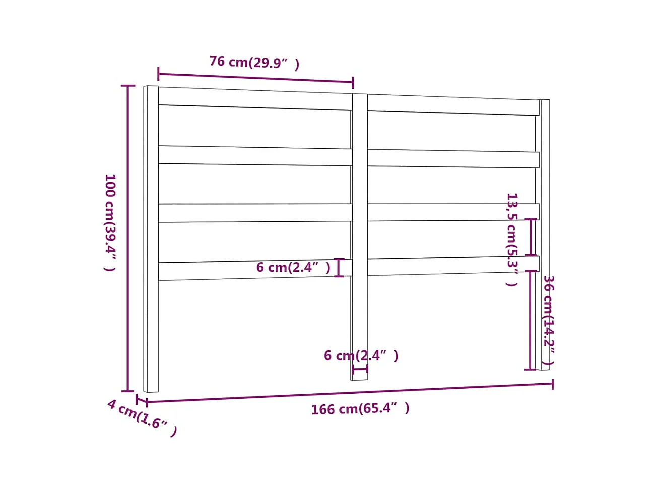 Tête de lit Gris 165,5x4x100 cm Bois massif de pin