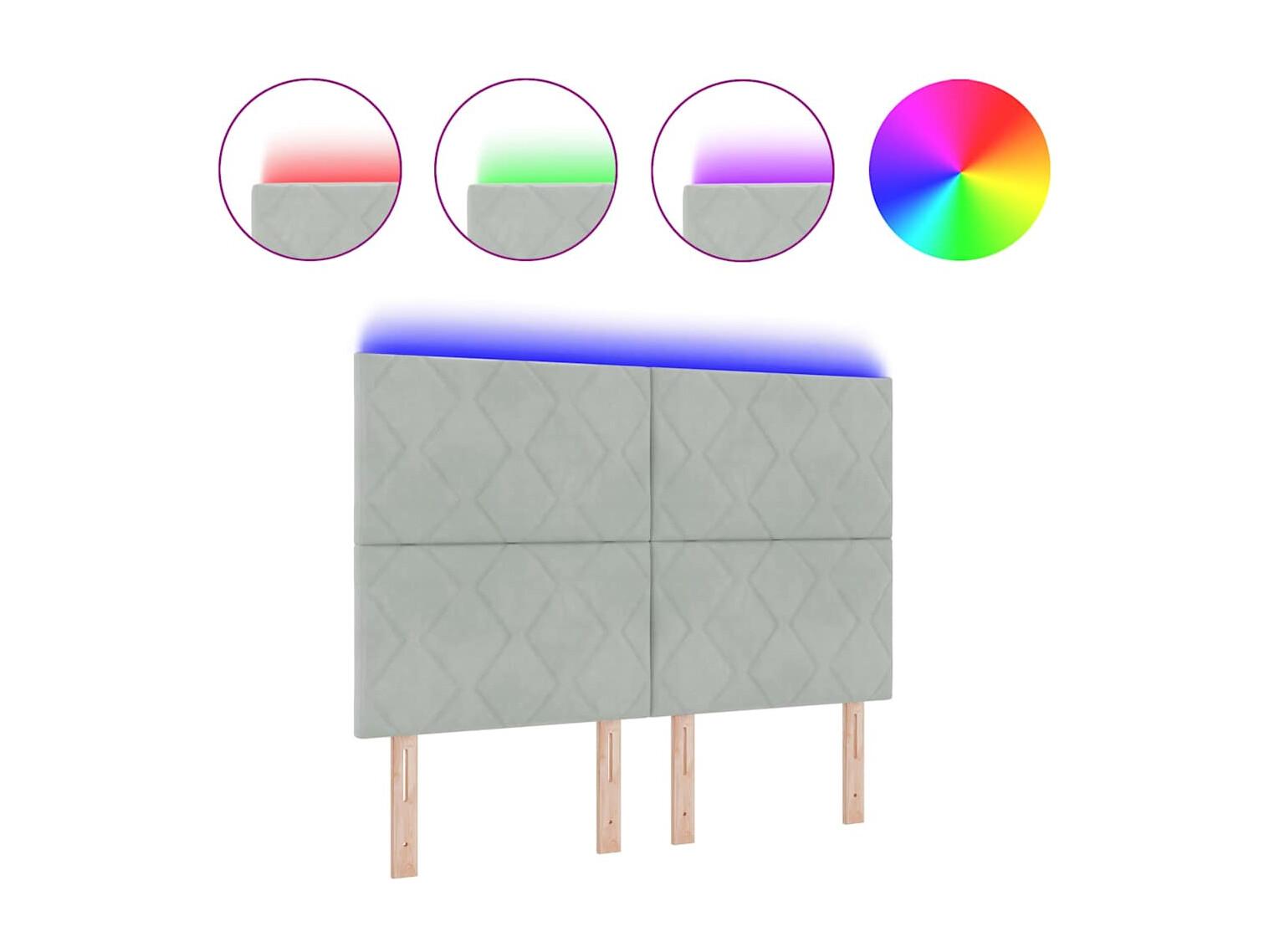Tête de Lit LED Argyle Gris clair 144 cm Velours