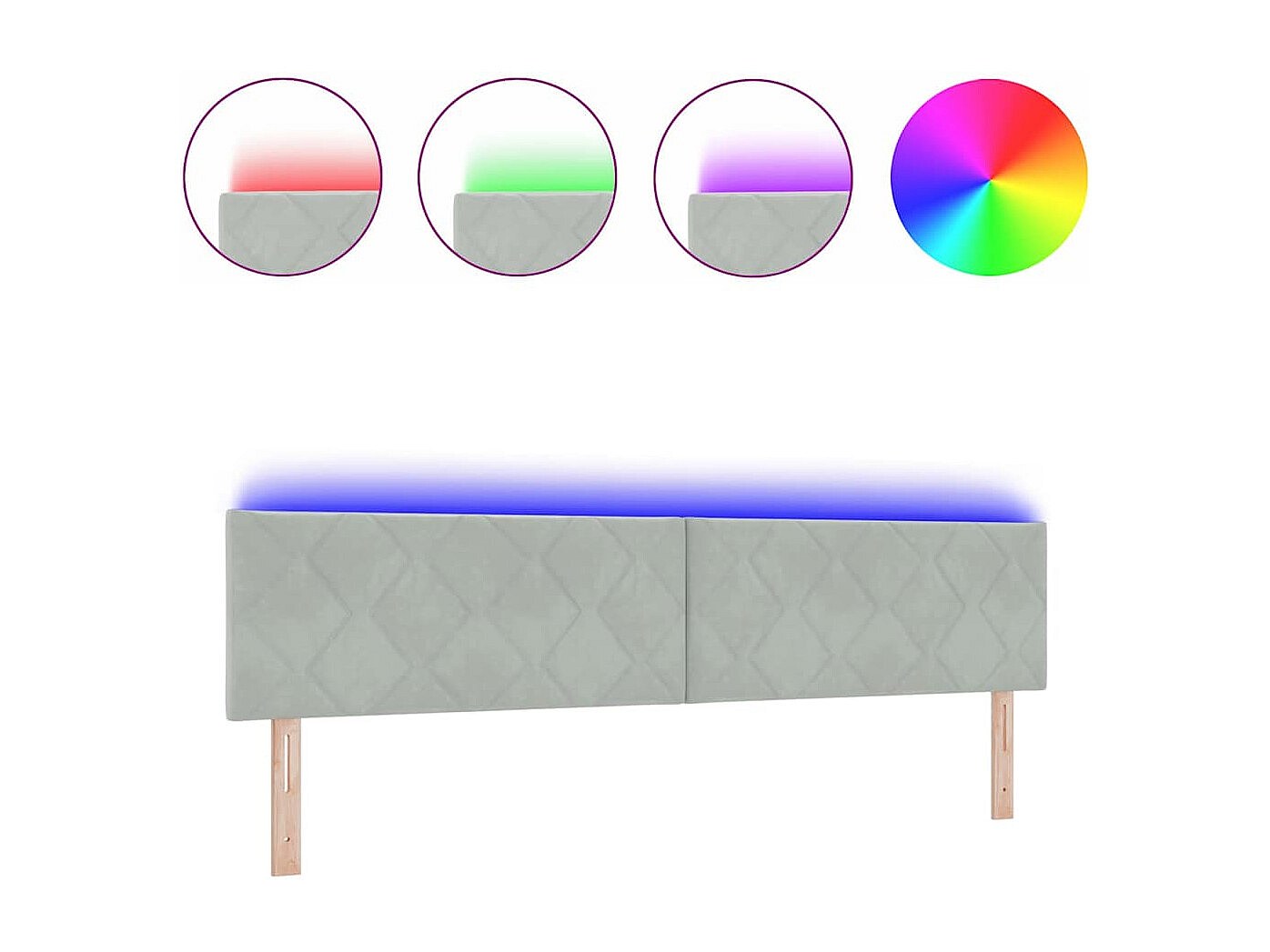 Tête de Lit LED Argyle Gris clair 144 cm Velours