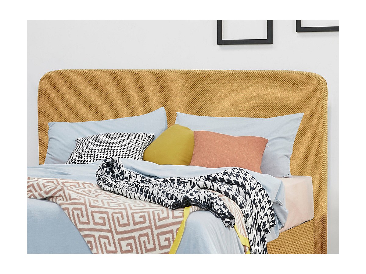 Blotissez-vous dans cette tête de lit aux angles arrondis et au revêtement très doux. Grâce à son tissu nid d'abeille, elle vous offrira encore plus de confort. En gris ou en jaune, elle apportera un charme scandinave à votre chambre.
