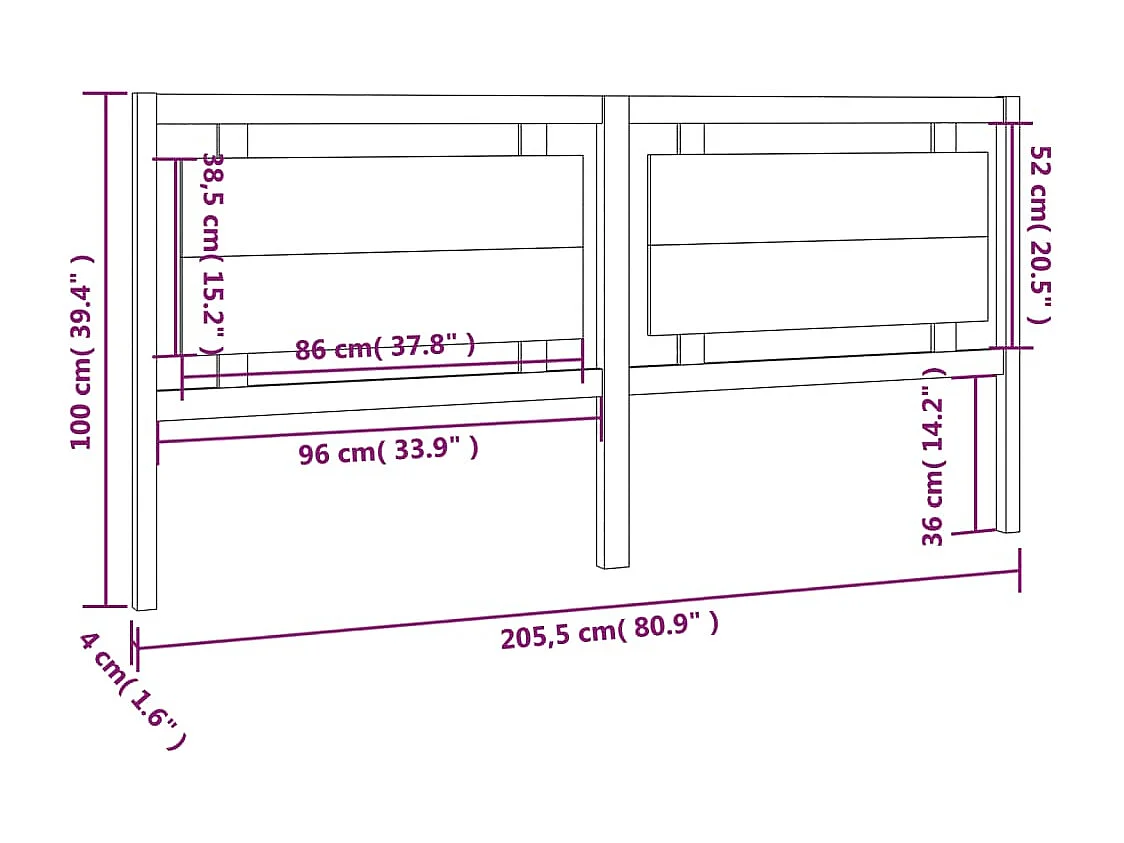 Tête de lit 206x4x100 cm Bois massif de pin