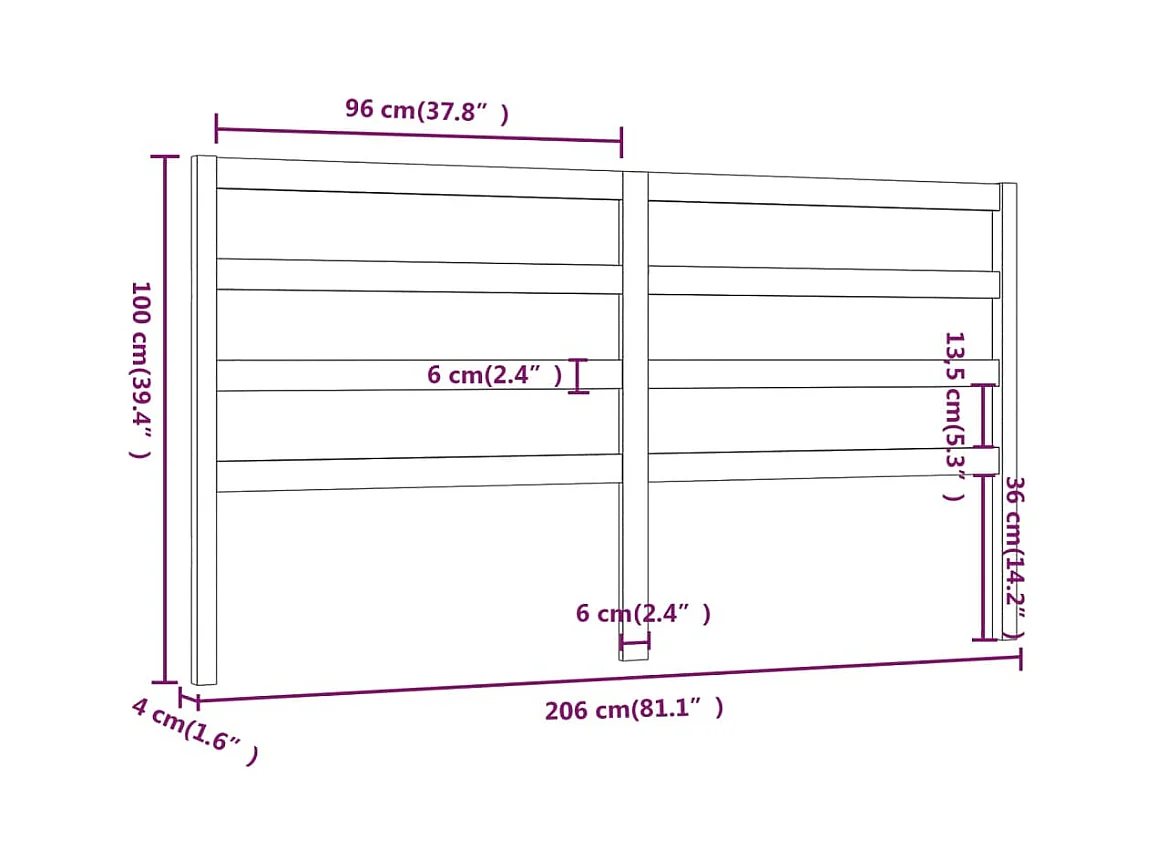 Tête de lit Marron miel 206x4x100 cm Bois massif de pin