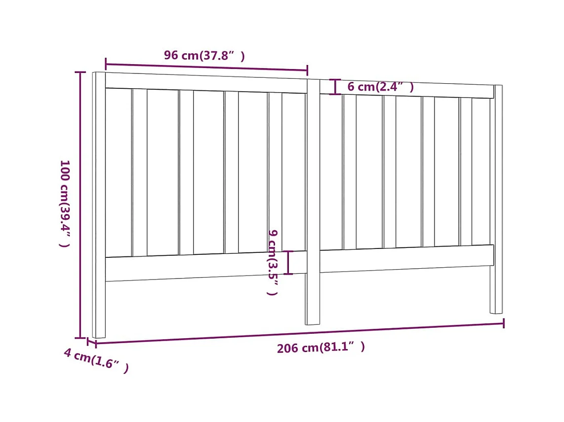Tête de lit 203,5x3x81 cm Bois massif de pin