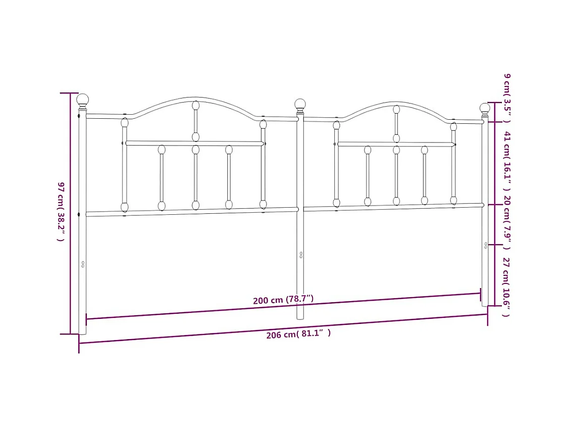 Tête de lit métal noir 193 cm