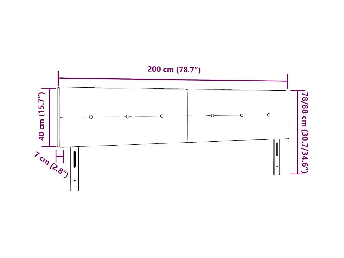 Tête de lit à LED Gris foncé 200x7x78/88 cm Tissu
