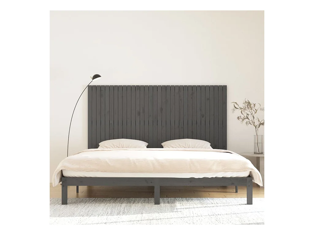Tête de lit murale Gris 204x3x110 cm Bois massif de pin POI14299 BonneVie Meuble