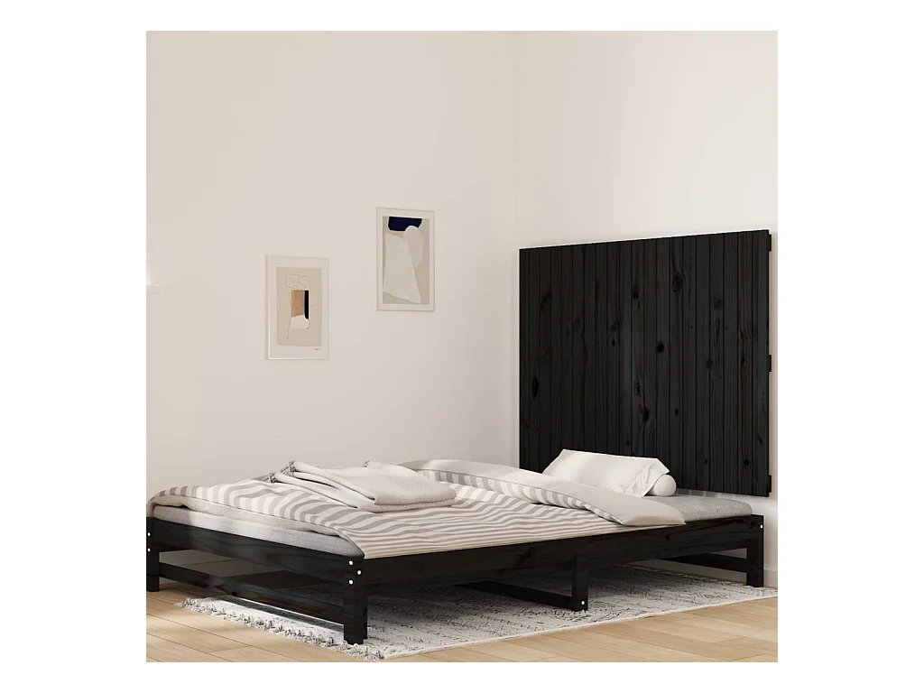 Tête de lit murale Noir 147x3x90 cm Bois massif de pin