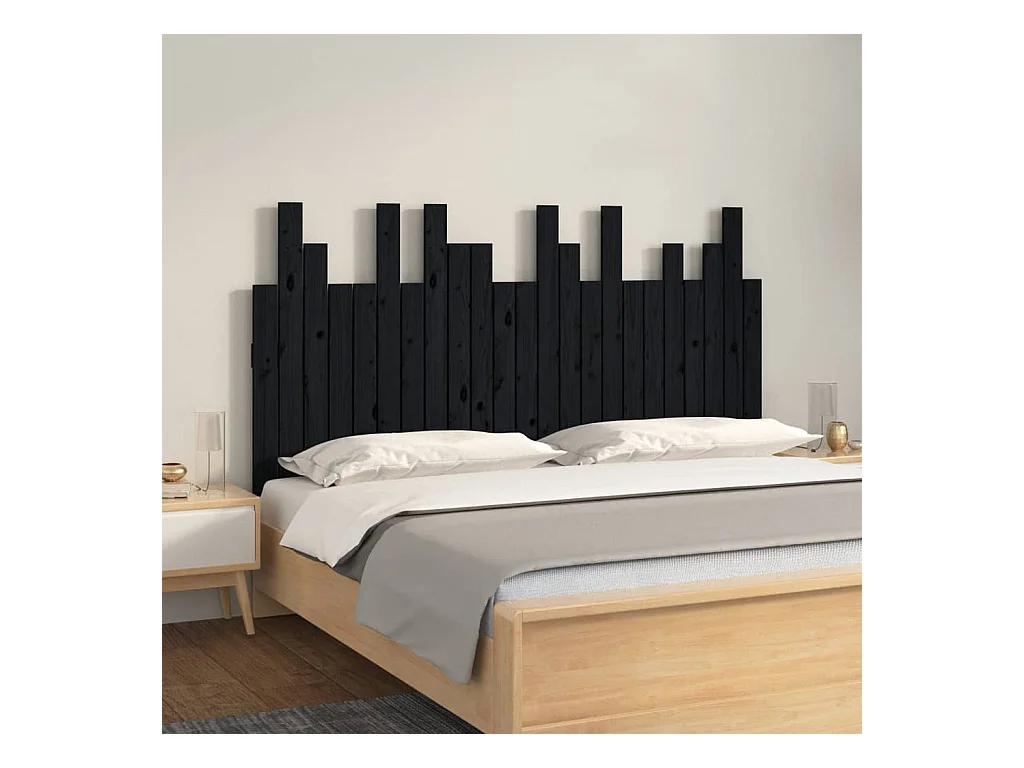 Tête de lit murale Noir 146,5x3x80 cm Bois massif de pin