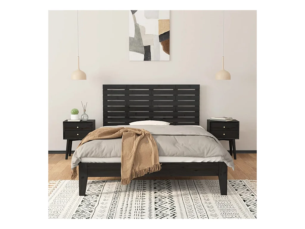 Tête de lit Noir 146x4x100 cm Bois massif de pin