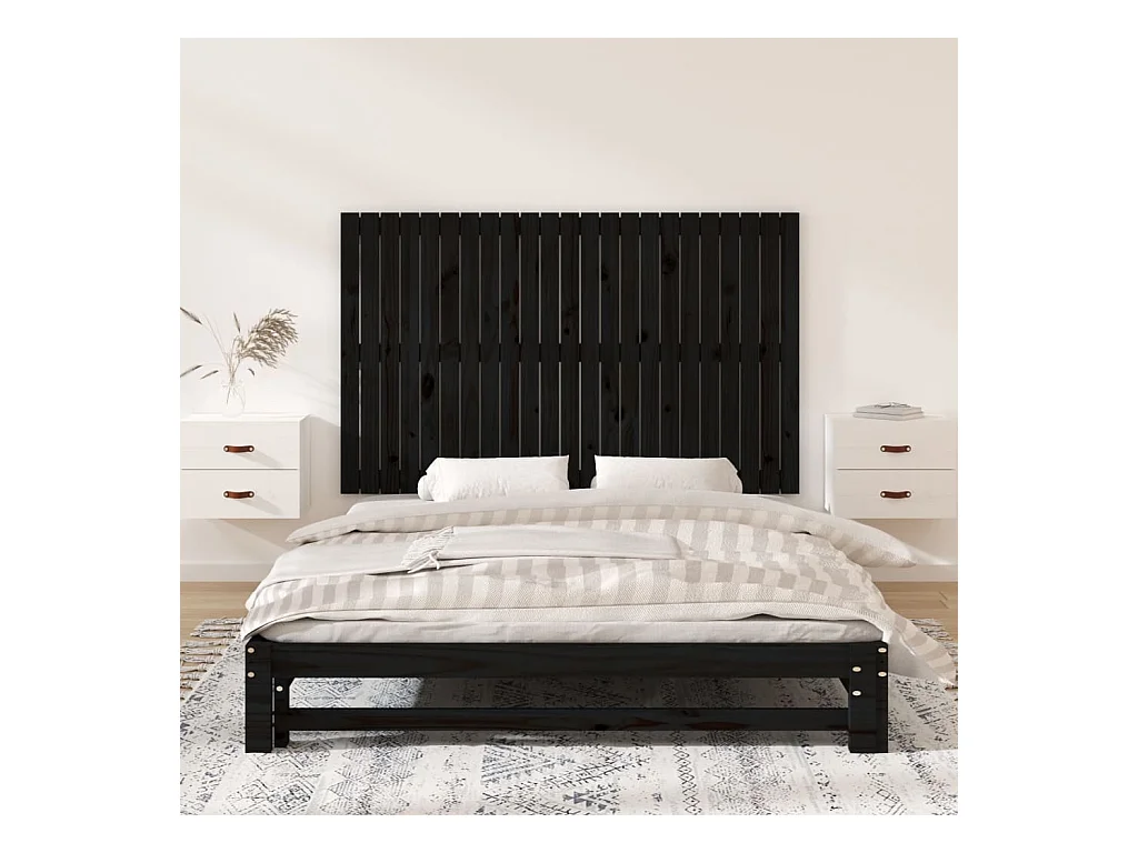 Tête de lit murale Noir 147x3x90 cm Bois massif de pin