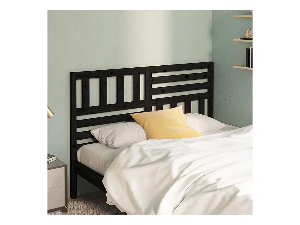 Tête de lit Noir 126x4x100 cm Bois massif de pin POI14166 BonneVie Meuble