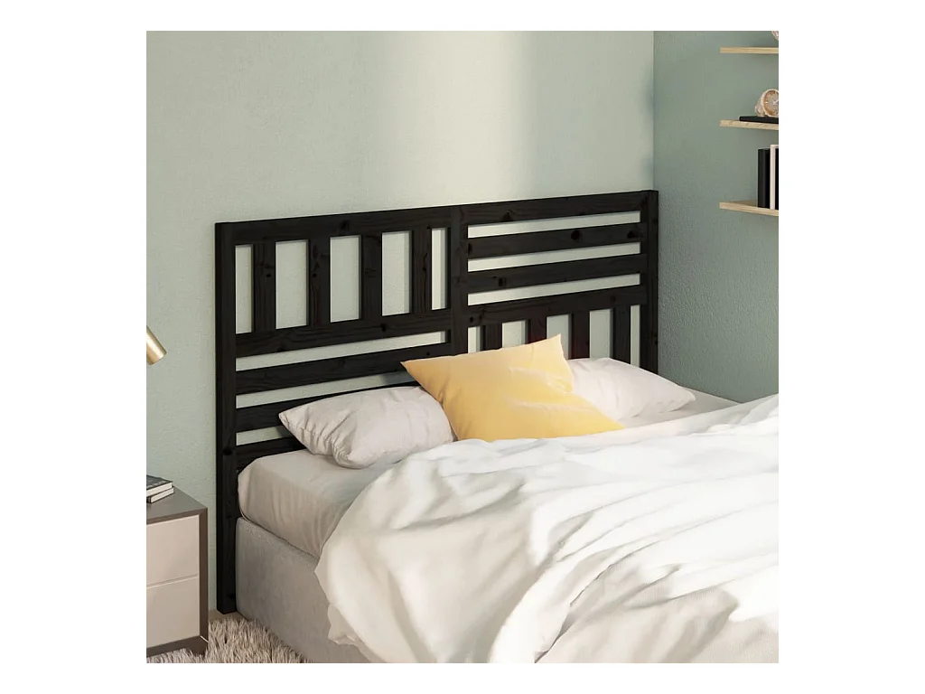 Tête de lit Noir 126x4x100 cm Bois massif de pin POI86823 BonneVie Meuble