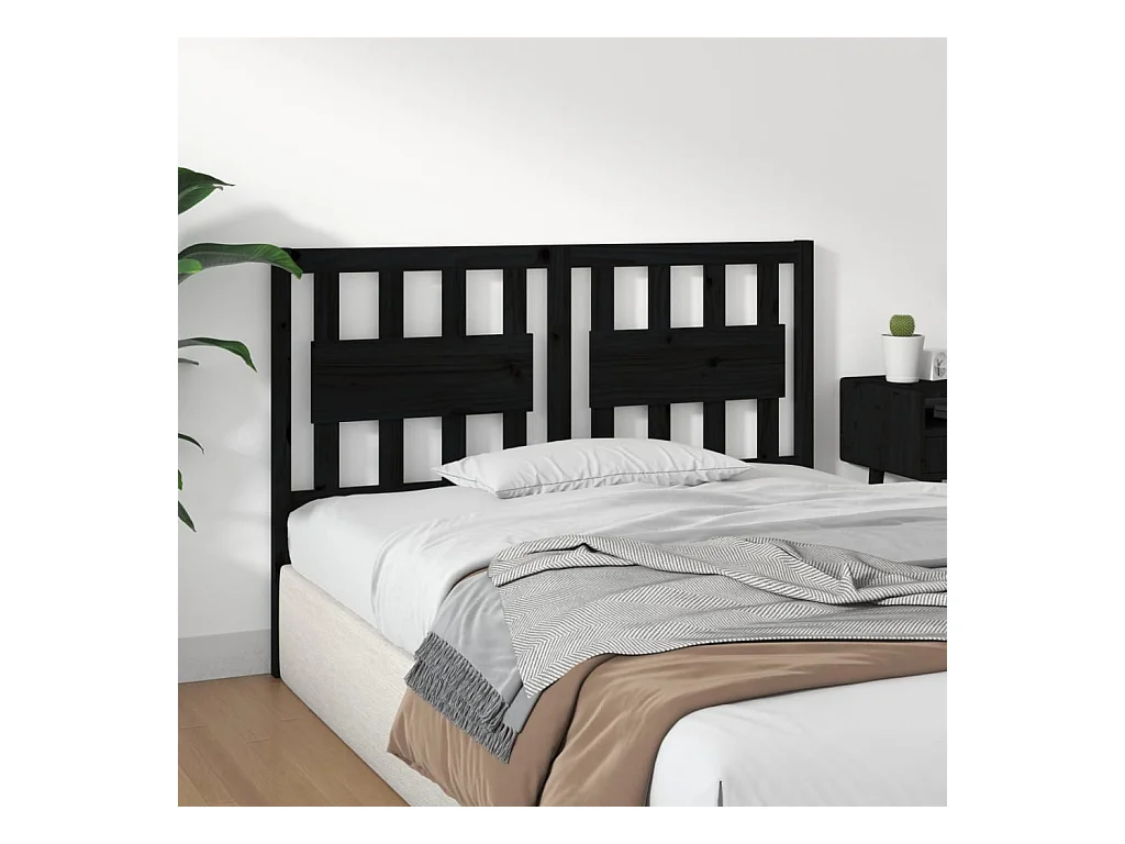 Tête de lit Noir 145,5x4x100 cm Bois massif de pin