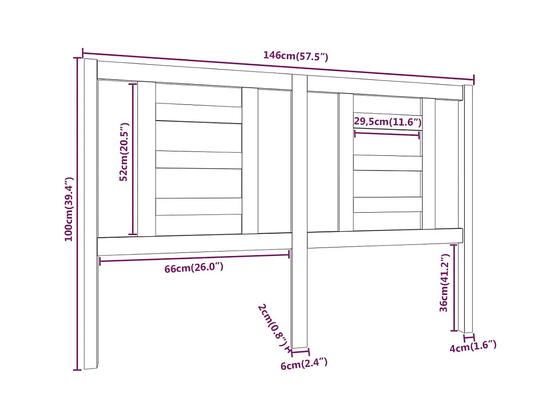 Tête de lit Noir 146x4x100 cm Bois massif de pin
