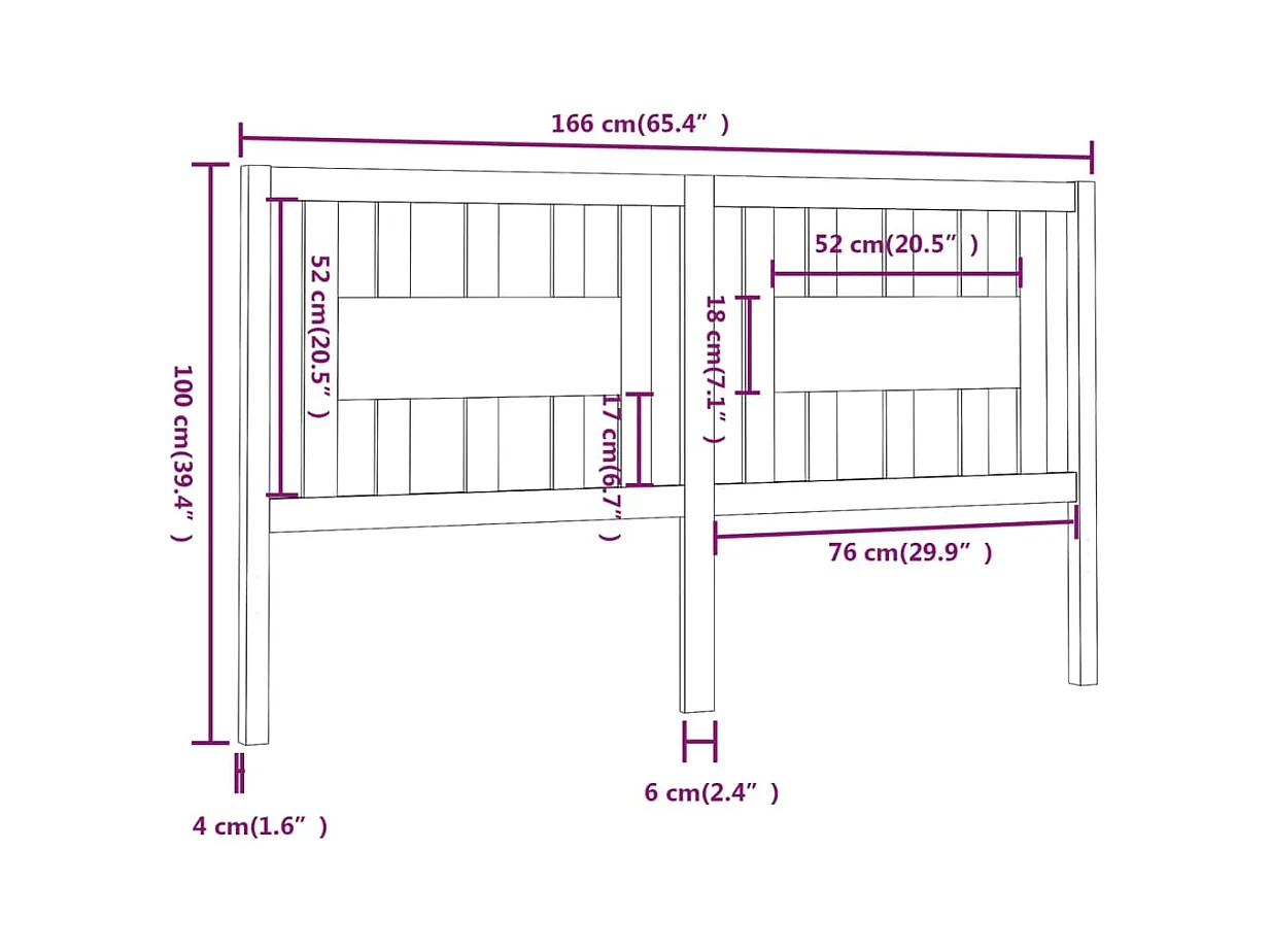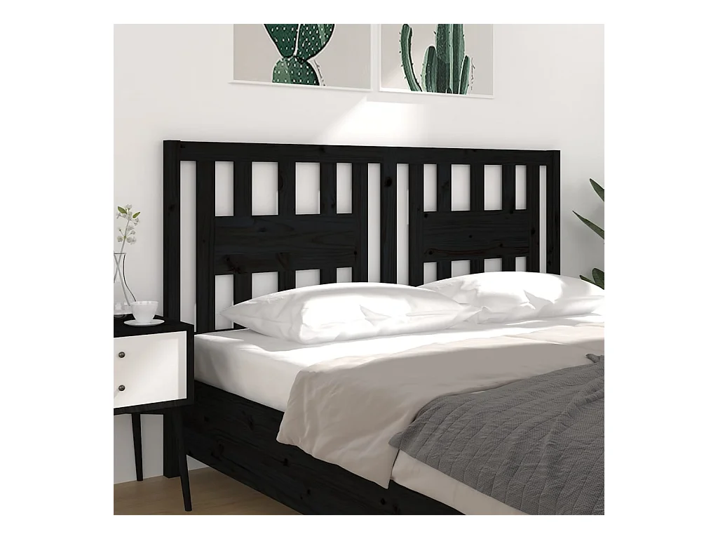 Tête de lit Noir 166x4x100 cm Bois massif de pin