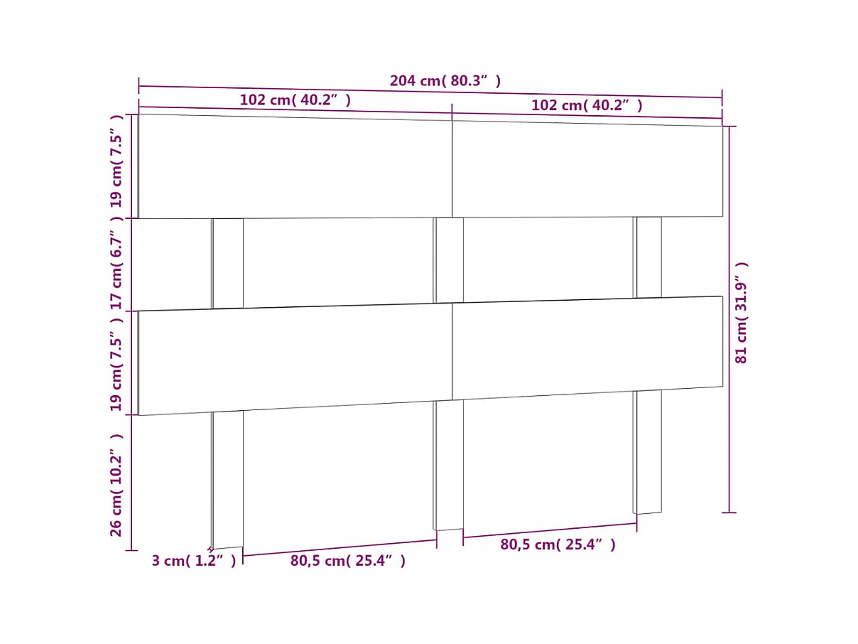 Tête de lit Noir 204x3x81 cm Bois massif de pin