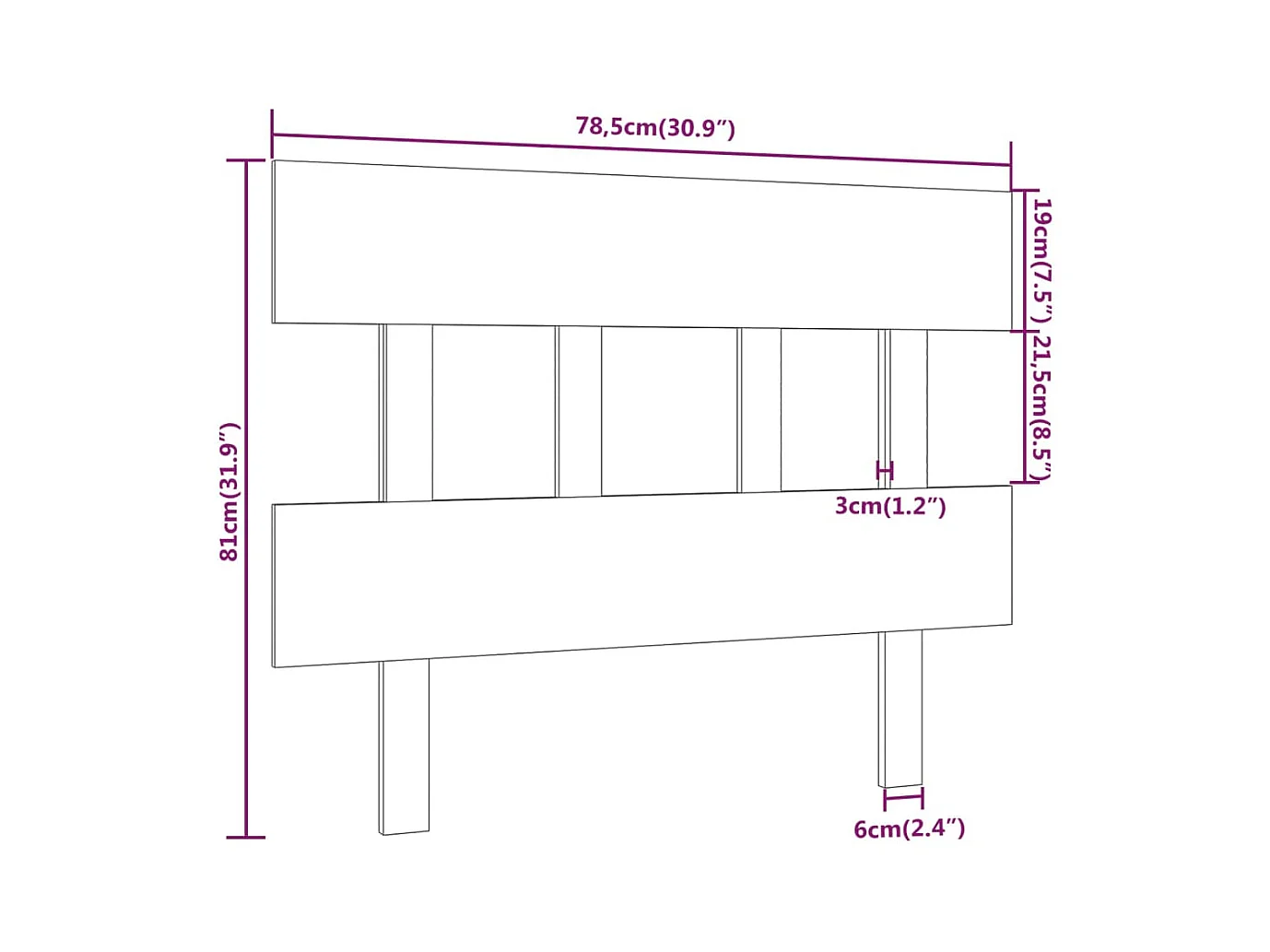 Tête de lit Noir 78,5x3x81 cm Bois massif de pin