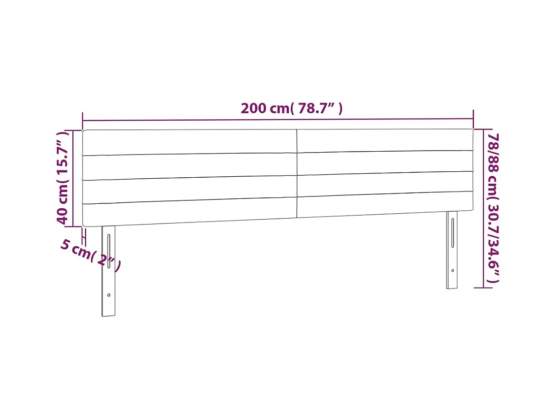 Tête de lit à LED Noir 200x5x78/88 cm Velours