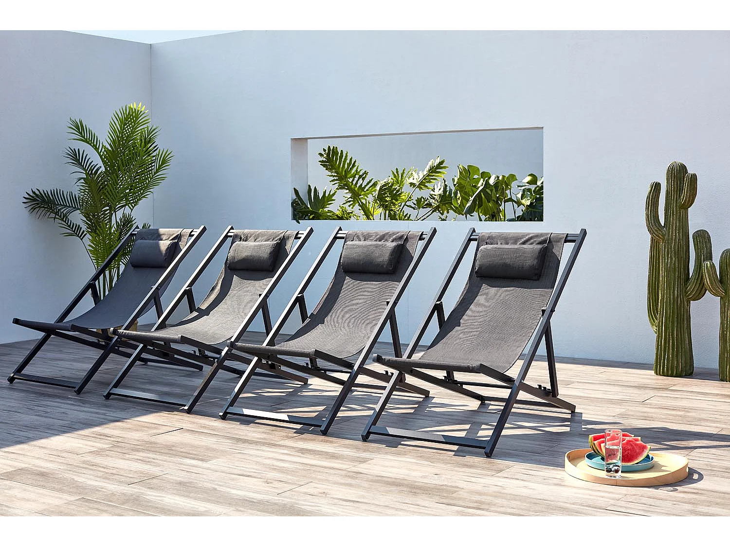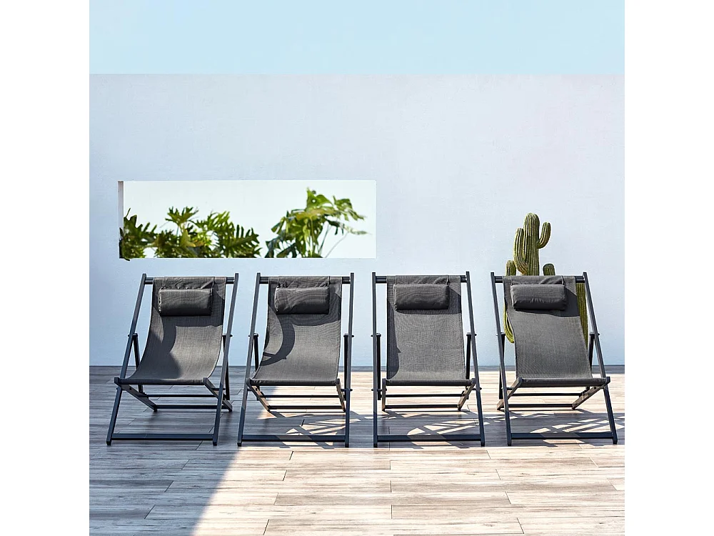 Lot de 4 transats alu gris TEVATA