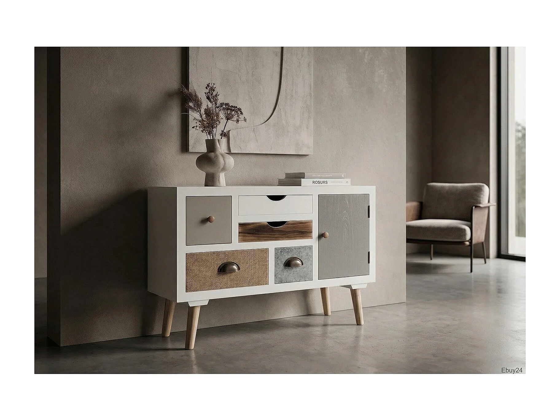 Thames Commode blanche avec 1 porte et 5 tiroirs de couleurs différentes. Livrée complètement montée.