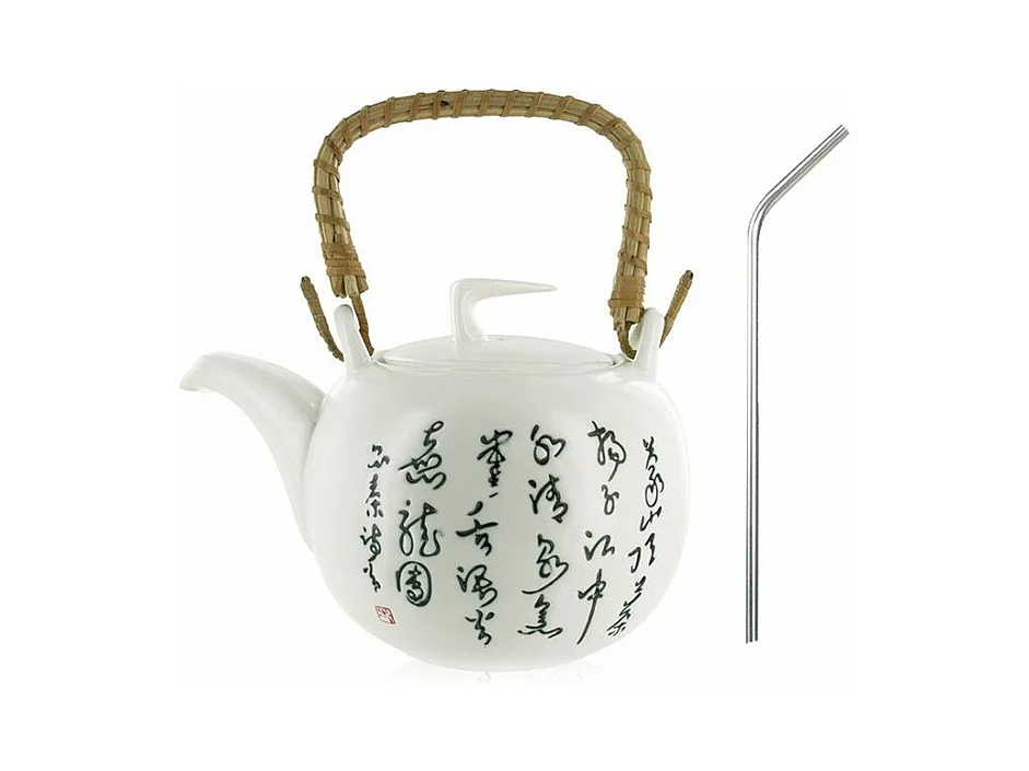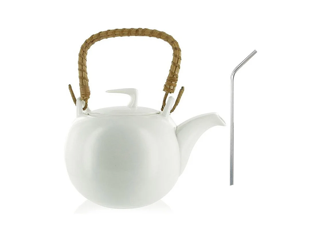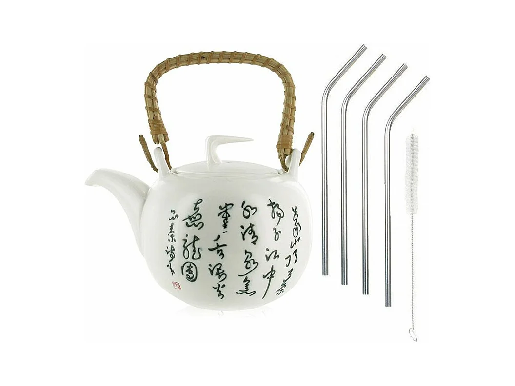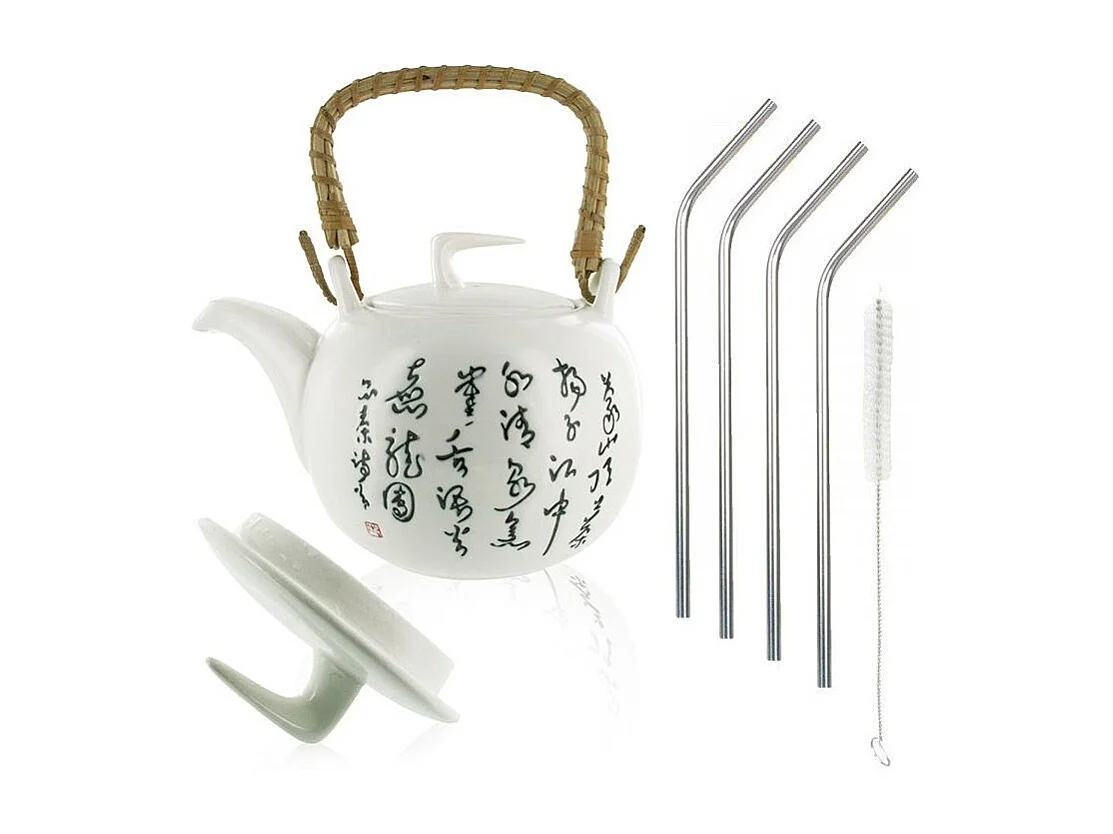 Théière Jiangxi en faïence 1 litre + 4 pailles en inox
