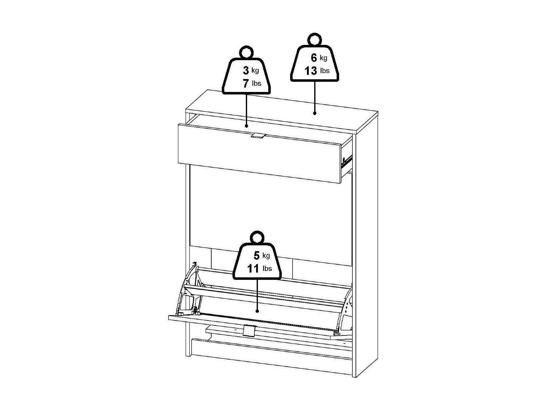 Shoebox Theophile, un tiroir, 24.05x70.3x101.25h cm Blanc, Meuble à chaussures