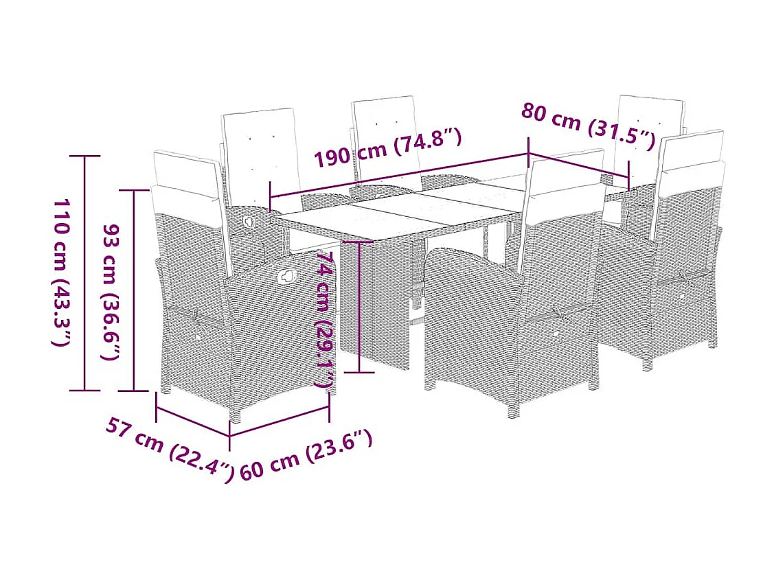 Emory Ensemble à manger de jardin coussins 7 pcs mélange beige rotin