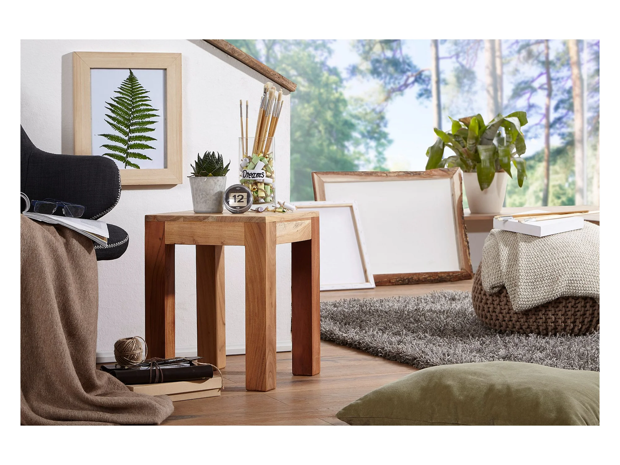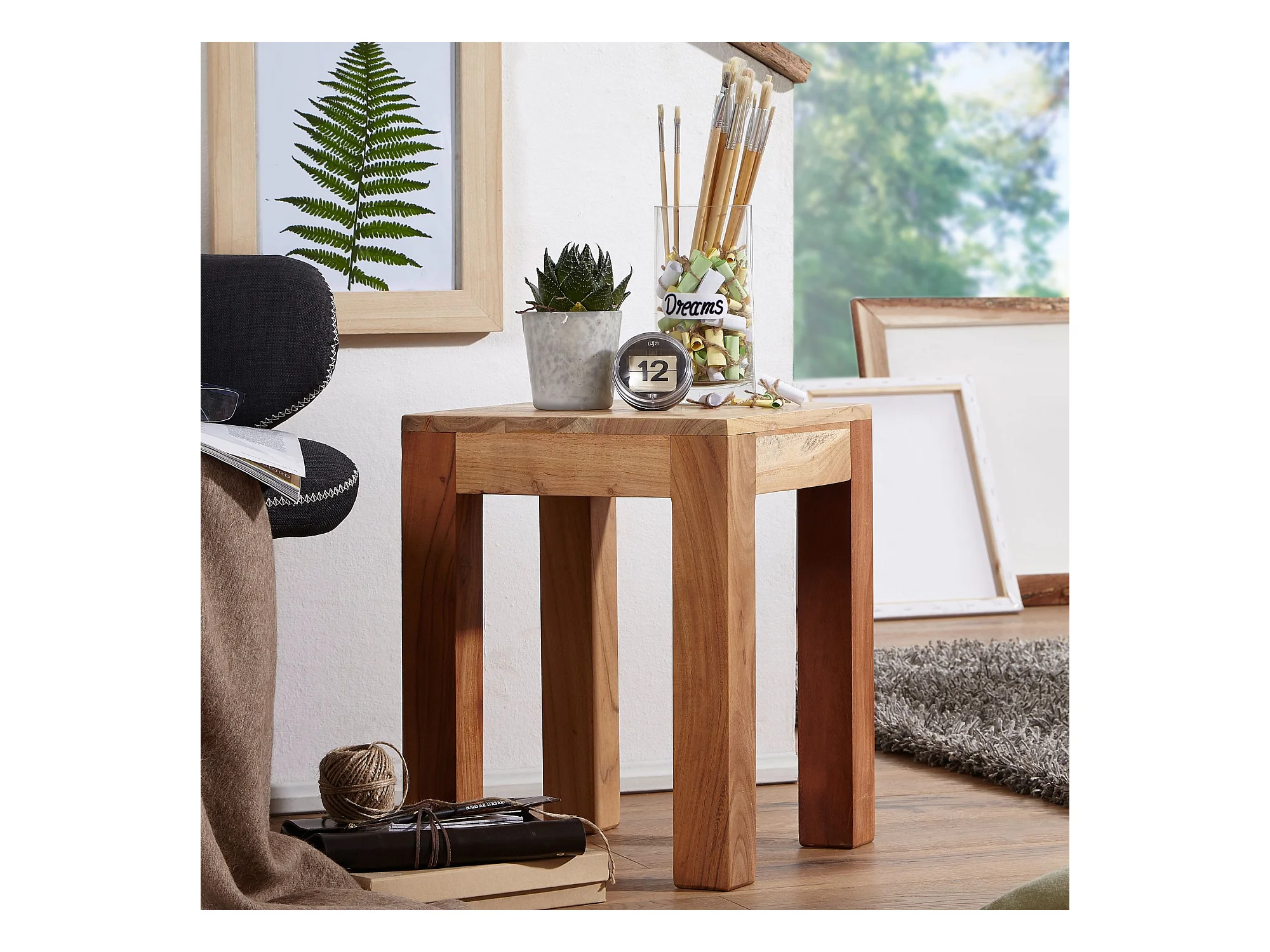 MUMBAI bijzettafel in massief acaciahout 35 x 35 cm design salontafel in landelijke stijl donkerbruin
